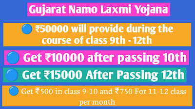 Namo Laxmi Yojana is a scheme for the school girls of Gujarat to help them financially so that they can continue their study. In this scheme the Gujarat government will provide them a Rs 50000 educational scholarship for next four years.